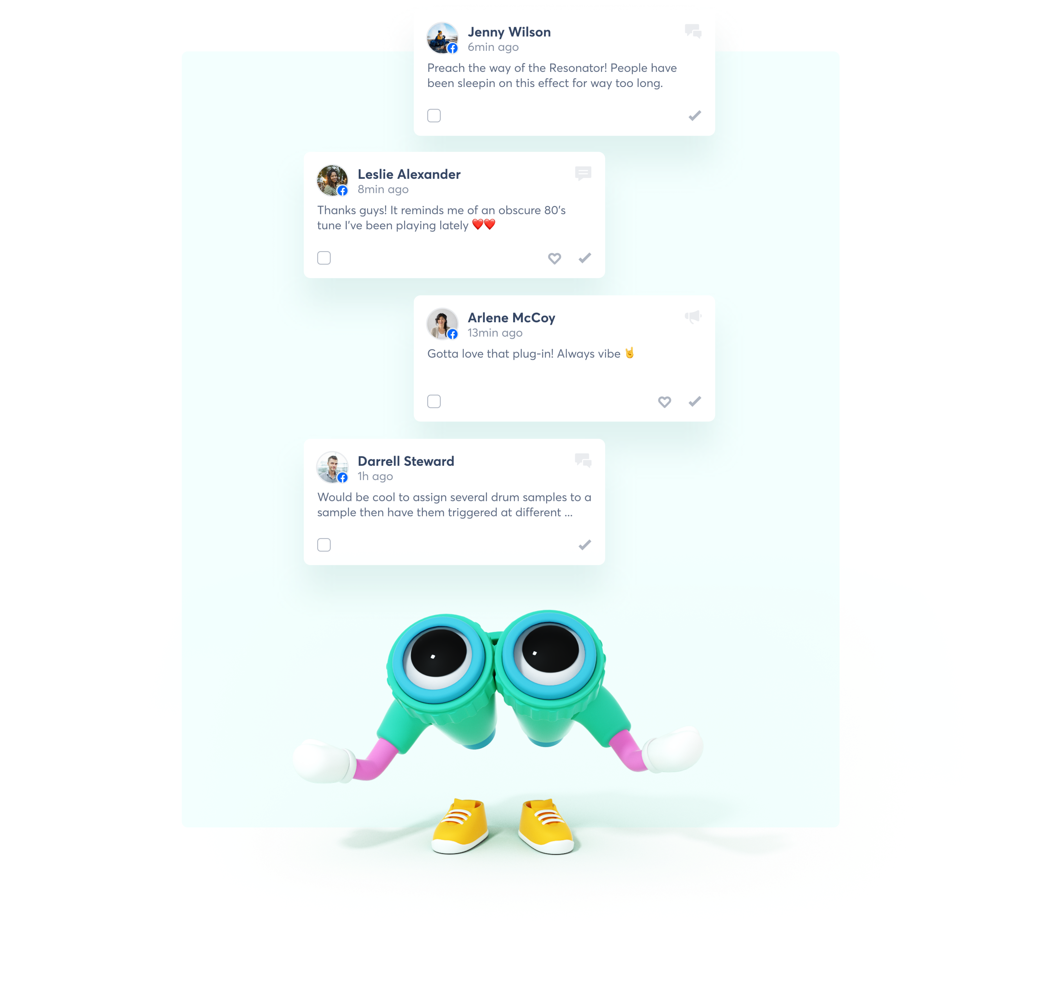 Haz clic en un elemento monitoreado e instantáneamente dale me gusta y responde. También puedes etiquetar, marcar como favorito y asignar cualquier monitoreo a un compañero de equipo o a un cliente.